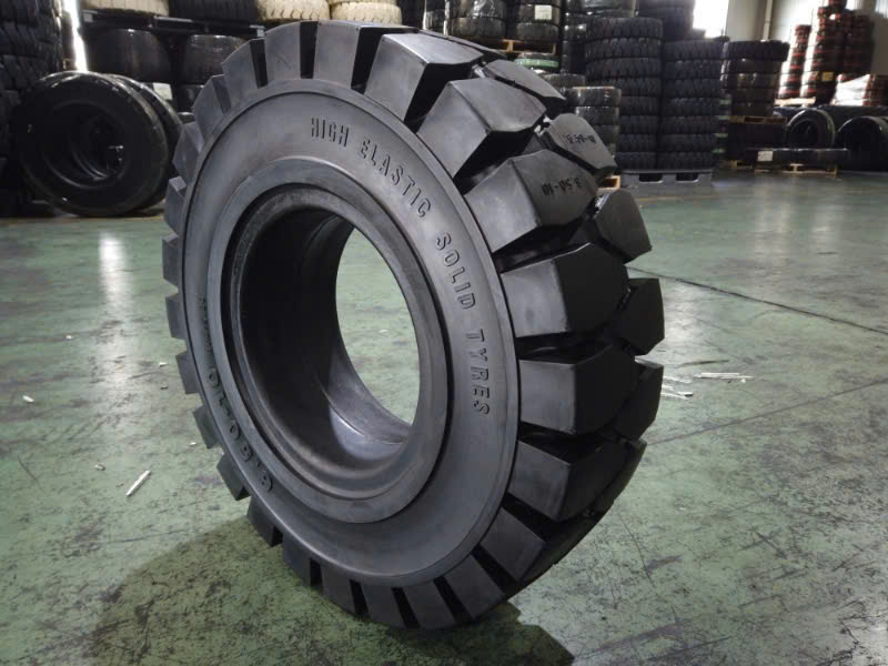 Lốp đặc làm từ cao su đặc 100%, không có ruột bên trong nên phù hợp với môi trường làm việc khắc nghiệt và ngoài trời